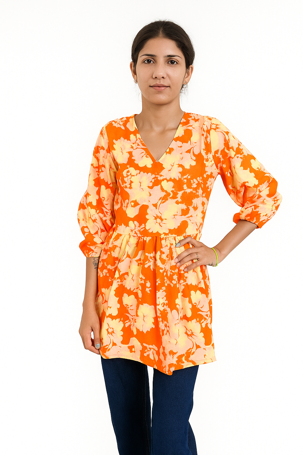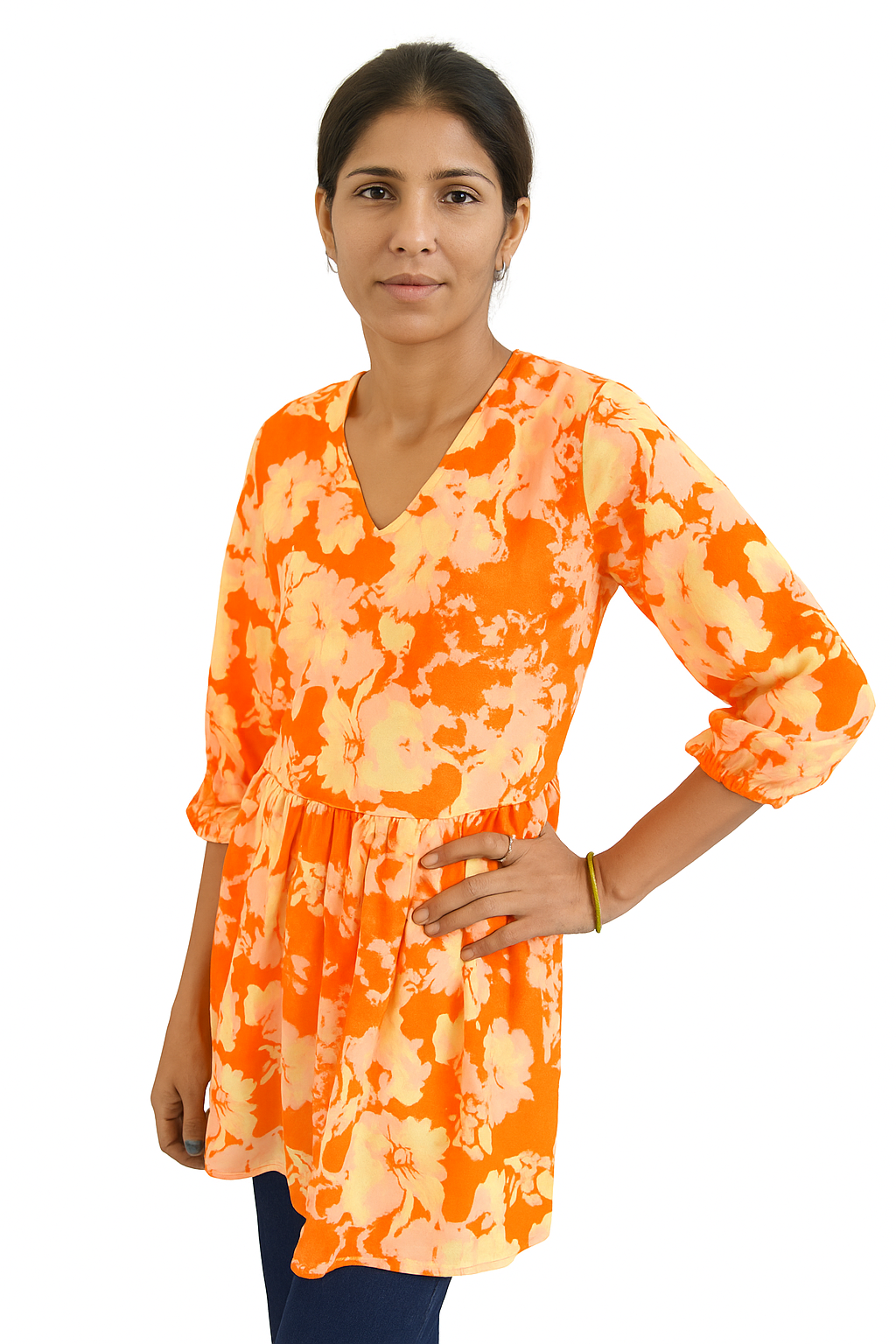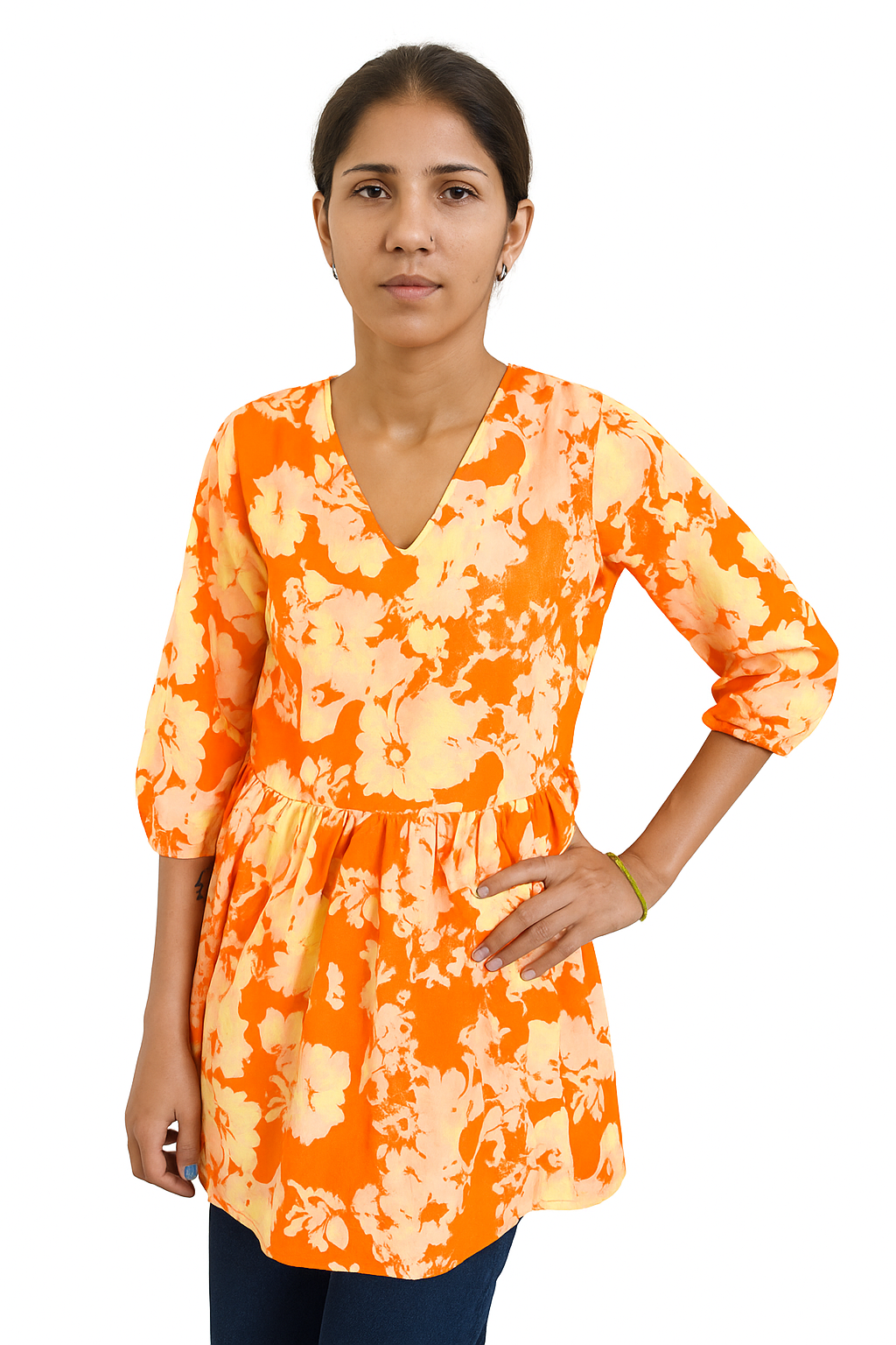 Vestaci: This stylish regular-fit western top in vibrant orange is ideal for casual outings, office wear, or a relaxed day out. Its versatility makes it easy to pair with jeans or trousers. Designed for the modern woman, it features lightweight fabric that drapes beautifully and keeps you cool in all seasons.