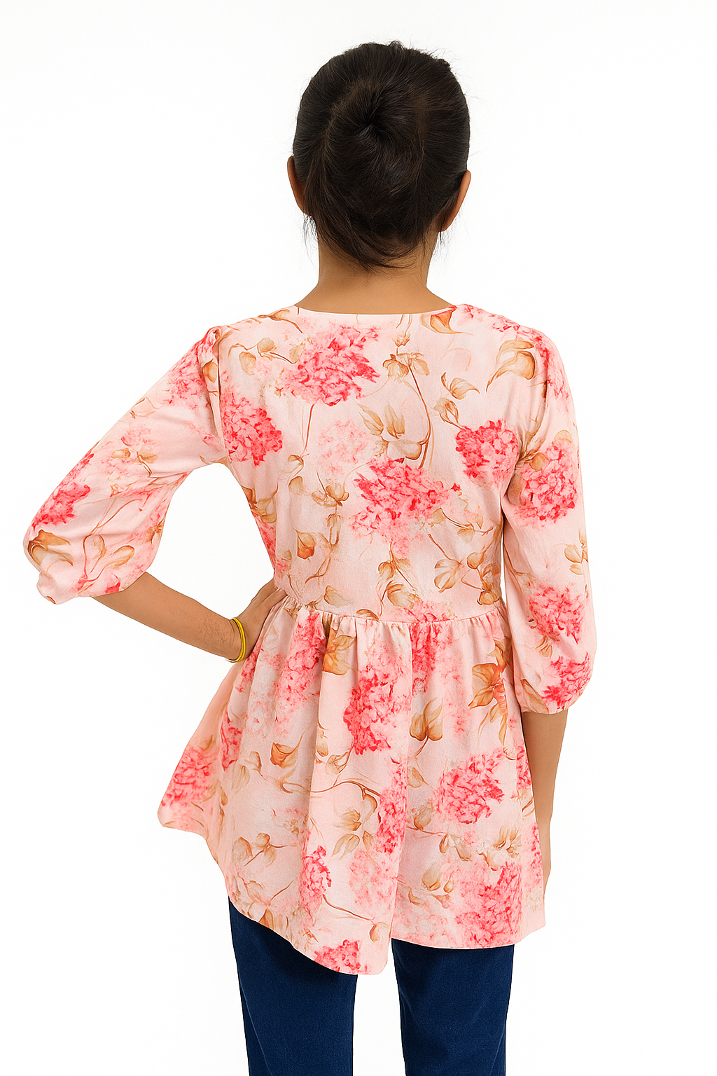 Regular-fit-top-in-cotton-and-crepeess Fashion Wear Peach Blouse Plazzo Dress With Dupatta