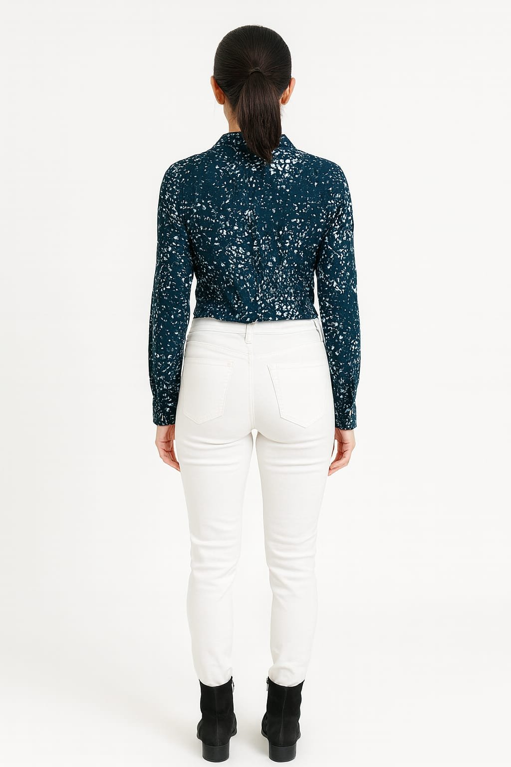 Vestaci Stylish V Collor Printed Multicolour Crop Shirt With Short Sleeves