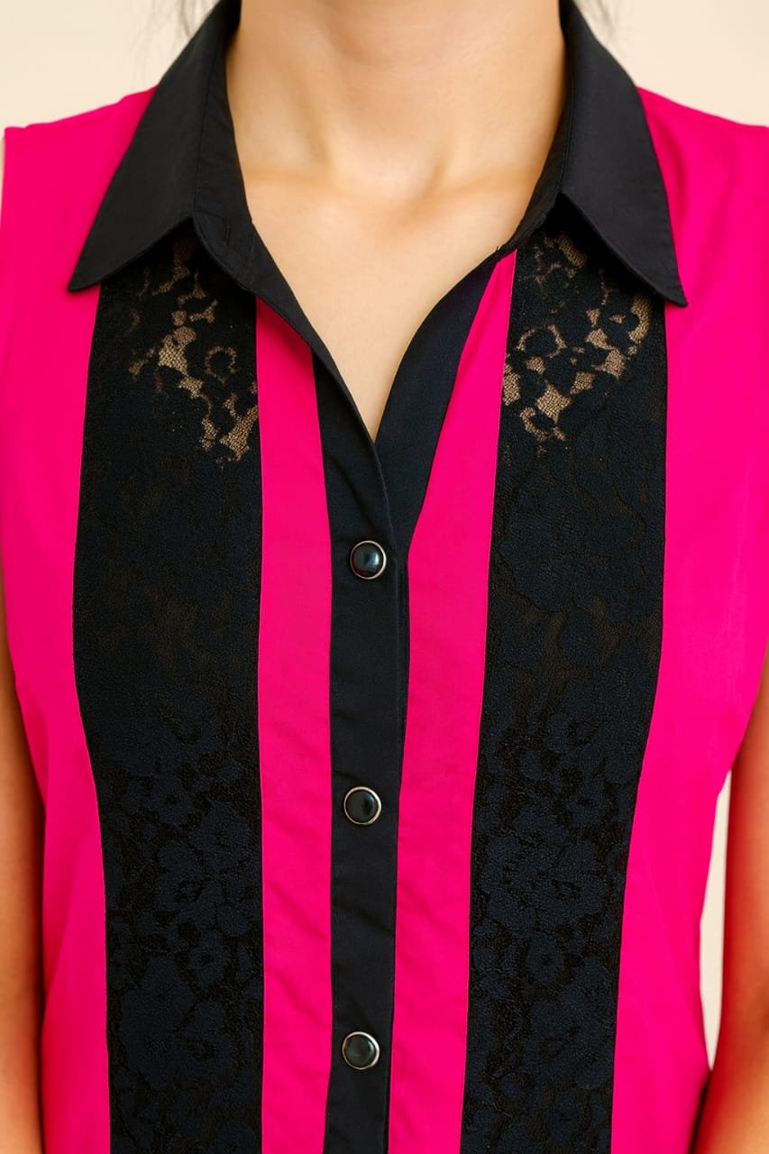 Vestaci Pure Cotton Pink and Black Solid Sleeveless Casual Shirt